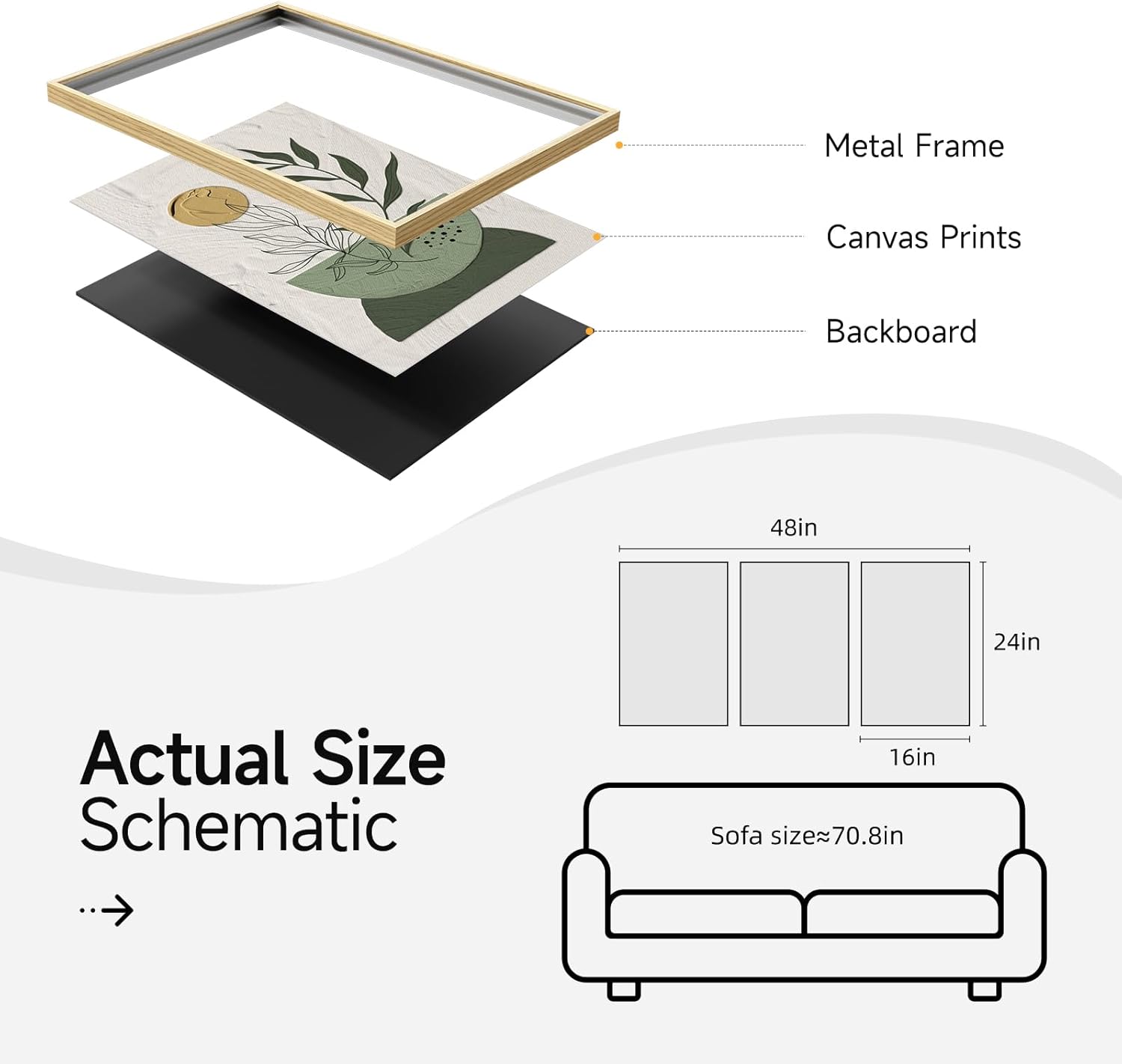 - [Framed Wall Art]: A Set of 3 large sage green framed boho wall art, each measuring 16x24 inches, 3 pieces total 24x48 inches. Each painting with a sturdy frame