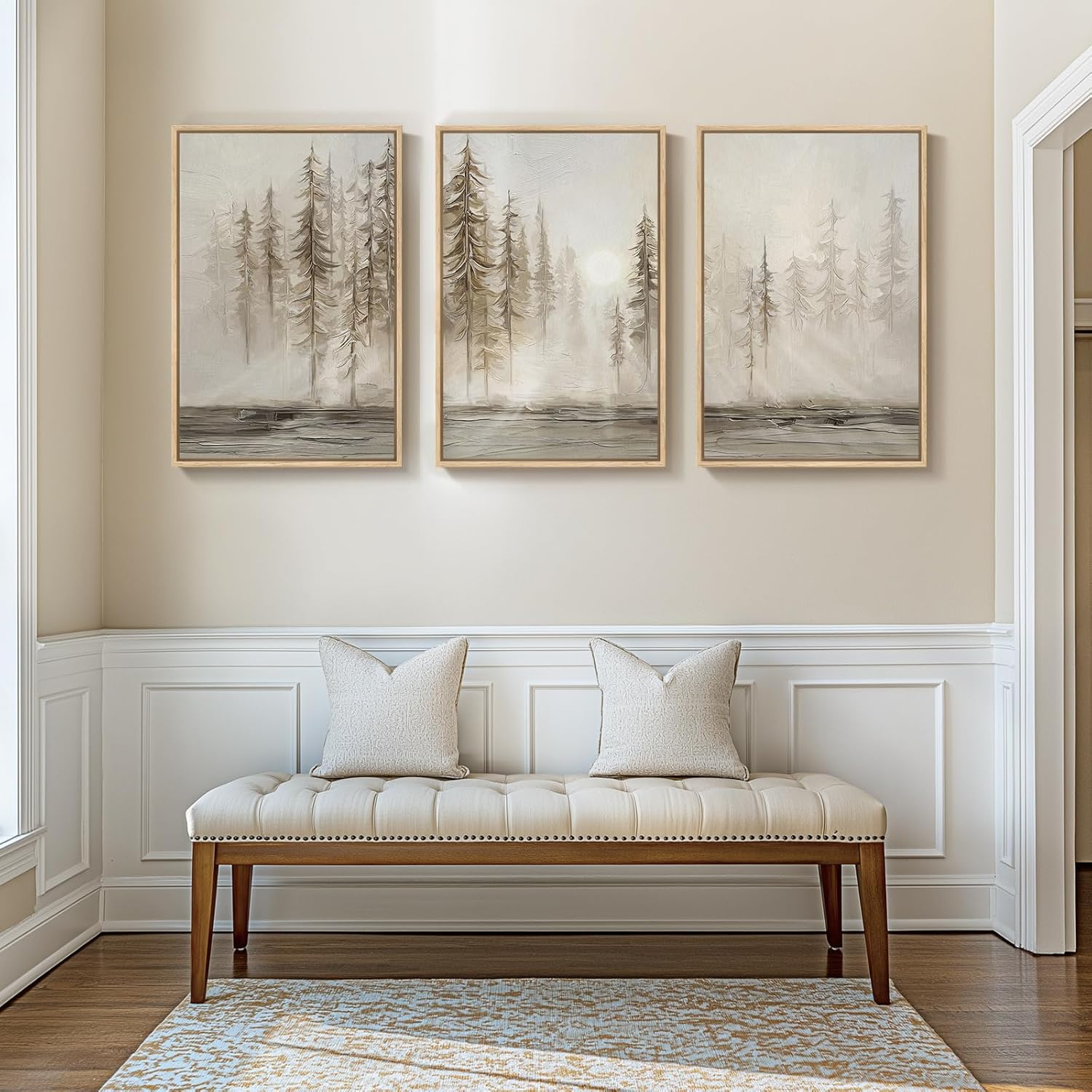 - 【Hanging Ready】Each painting comes framed and ready for display. Once received, you can easily hang this artwork on your wall to decorate your beautiful home. The beige tones in the frames complement a wide range of interior styles, from Nordic minimalism to more traditional decors.